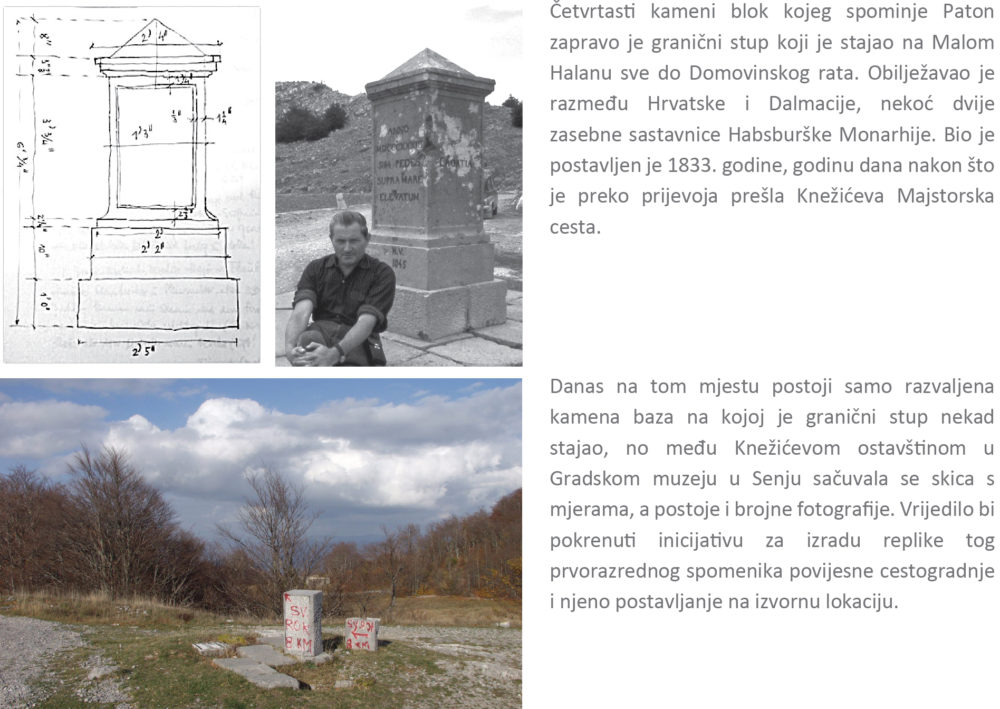 Napokon, pred samu zoru trećeg jutra po odlasku iz Karlovca probudio sam se u diližansi koja je stala da zamijeni konje kod postaje na vrhu Velebita. Udovi su mi bili utrnuli od hladnoće unatoč podstavljenom kaputu i teškom ogrtaču, a oštri vjetar pozdravio me kad sam stupio iz kočije u dubok snijeg. Zahvaljujući hladnom i jasnom zvjezdanom nebu mogao sam razaznati da sam stigao na vrh prijevoja obrubljenog smrekama i nadvišenog stjenovitim šiljcima. Četvrtasti kameni blok s moje lijeve strane privukao mi je pažnju pa sam ga osvijetlio fenjerom i s jedne strane pročitao „Croatia“, a s druge „Dalmatia“. Prošli su me žmarci zadovoljstva od osjećaja da sam na pragu novog i zanimljivog polja istraživanja. Iščekivanje novih prizora i čudnih običaja osvježilo je maštarije iz mladenačkih putovanja. Spazivši zdesna prigušeno crvenilo žara kako sjaji kroz prozor kolibe u kojoj su sjedili graničari, ušao sam da se ogrijem jer je vozač odlučio pričekati da se razdani prije no što krene nizbrdo.